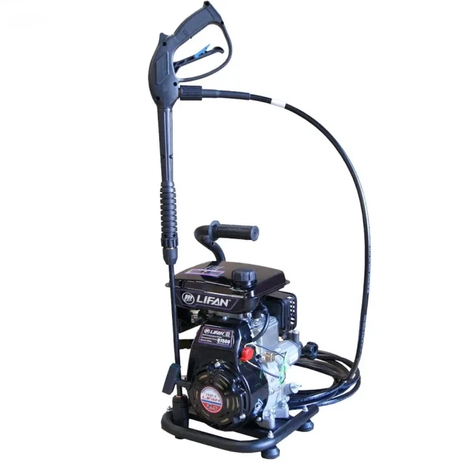 Этот аппарат является компактным в линейке моек высокого давления. Масса мойки в собранном рабочем состоянии всего 16 килограмм. Такой малый вес и компактные размеры аппарата, позволяют легко разместить его даже в багажнике малолитражного автомобиля. На мойке используется высококачественный насос высокого давления с прямым приводом Annovi Reverberi. Данная модель оснащена только ручным запуском двигателя. Мойка может быть подключена как к водопроводной сети, так и в состоянии работать, выполняя забор воды из различных емкостей, при условии забора воды выше уровня самой мойки. Мойка оснащена четырехтактным бензиновым двигателем Лифан, мощностью 2.5 лошадиные силы, достаточно экономичным и при этом крайне простым в эксплуатации и надежным агрегатом. Давление струи воды на выходе из пистолета достигает 106 килограмм на квадратный сантиметр. Расход воды при максимальном режиме работы достигает 7.6 литров в минуту. Пистолет мойки оснащен распылителем с возможностью выбора формы выходной струи воды.