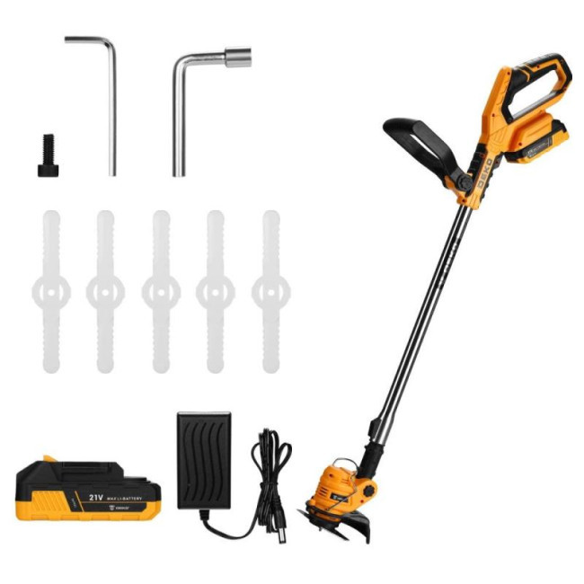 Триммер садовый аккумуляторный DEKO DKTR21 - компактная модель, удобная для скашивания травы в труднодоступных местах, вдоль заборов, клумб, подравнивания газонов, краев садовых дорожек. Оснащен телескопической штангой для комфортной работы.